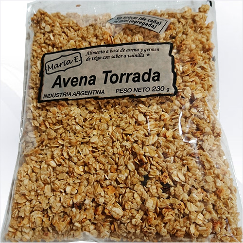 Alimento a base de avena y germen de trigo con sabor a vainilla. Ingredientes: Avena, jarabe edulcorante nutritivo (fructosa - dextrosa - maltosa - maltotriosa), germen de tigo, agua, licor seco, esencia artificial de vainilla y sal. Mantenga el producto en lugar fresco y seco en su propio envase cerrado o en recipiente hermetico.